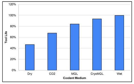 Adapted bar chart to show relative tool life during the cryogenic end milling of Inconel 718, adapted from [48].