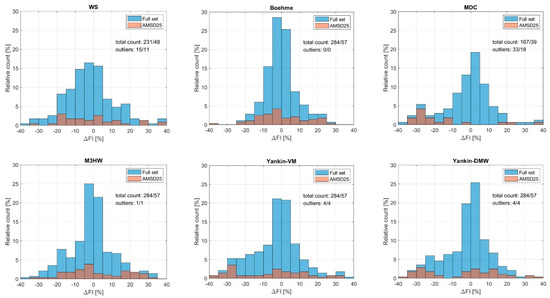 The results gathered in the next section will thus refer to individual load cases only for the AMSD25 data set [31], i.e., to data items, which generate either a large deviation from zero ΔFI or a large scatter in the prediction quality for most fatigue strength criteria. This complete printout can also serve as some kind of a reference for future research papers dealing with new criteria. To get the information of the prediction quality overall and in particular subsets, however, the ΔFI statistics over specific FatLim (sub)sets will be used and presented. The most important parameters of the statistical analysis are listed below: