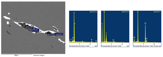 - Manganese sulfides, aluminum oxides, or oxysulfides, which were segregated both individually and in clusters, were found in the matrix of all tested steels. In steels with Bi, the Bi particles were segregated both separately in the form of globules, but also as envelopes of elongated MnS or Al2O3 particles segregated in rows.
