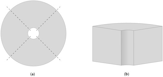 Residual stresses were determined by means of X-ray diffraction (XRD). For drilling, the XRD analysis on the hole surface requires cutting the workpiece because it is hidden by the component itself and is therefore not easily accessible. For this purpose, Girinon et al. [21] developed an experimental procedure in the case of a 316L austenitic stainless steel. This consists of cutting the workpiece into four identical parts as shown in Figure 5. Experience shows that this approach serves the purpose of not significantly relaxing residual stresses on the hole surface. The same procedure is applied in this work. The cutting stage is performed with lubricant and a very low advancing speed (≈0.5 mm/min) to avoid intense heating which could modify the residual stresses.