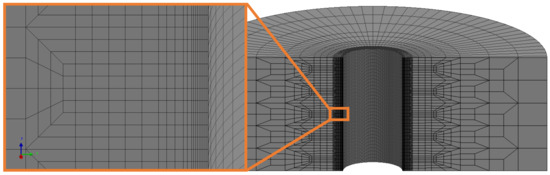Figure 15 shows the mesh discretization with a zoom on the 16 m-thick elements in the radial direction near the hole surface. The temperature field computed during the whole drilling operation in the previous section is projected onto this mesh as shown in Figure 16.
