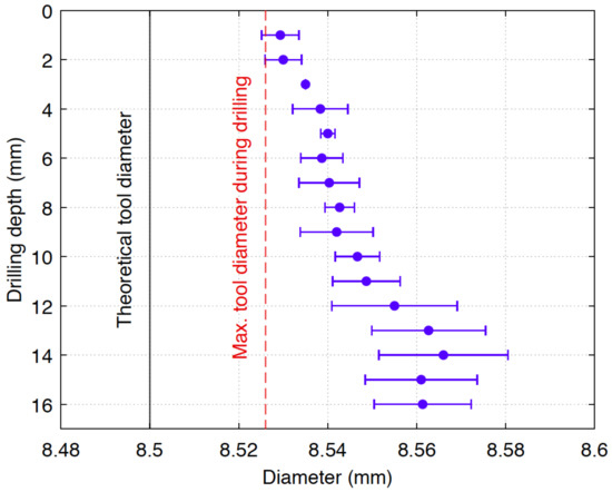 Distribution of experimental diameter after dry drilling.