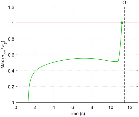 Residual stresses are induced by the development of plasticity during the dry drilling operation. The beginning of residual stress generation can be detected when the ratio between the von Mises equivalent stress and the yield stress denoted by reaches the value of 1 somewhere in the workpiece (see Figure 20). This value corresponds to its entry in the plastic domain.