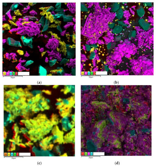The results of the energy dispersive analysis of the initial powders are shown in Figure 3.