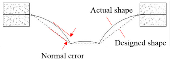 The sheet’s geometric error primarily comes from the springback caused by the sheet’s uneven residual stress distribution after unloading the fixture and tool. In particular, the sidewall’s inward springback deformation causes the geometric error of the part in the normal direction (Figure 12).