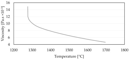 The ASTM F75 alloy solidus temperature considered in this work was 1275 °C and the liquidus temperature was 1382 °C. These values, as well as density and viscosity curves were unchanged during those several iterations. The initial temperatures defined for the beginning of the simulation (at t = 0 s) were: 1000 °C for the ceramic shell, pouring cup, and wool blanket, and 1550 °C for the alloy.