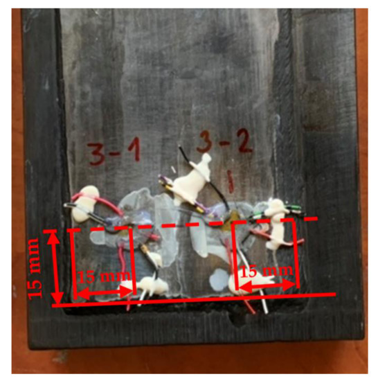The SINT MTS-3000 measuring system (SINT Technology, Calenzano, Italy) was used in the experiment [39]. It is an automated measuring system that allows accurate measurement. A strain gauge HBM 1-RY61-1.5/120S was applied to the selected locations with X60 adhesive by HBM to record the relaxed deformations. The aim was to compare the levels of residual stresses in the cladding layer of individual samples. Location 1 and Location 2 were situated in one line about 15 mm from the edges of the cladding layer (Figure 4). Location 3 was in line with the locations 1 and 2 but outside the cladding area. Measurements in Location 3 were performed on samples 03 and 04, and their results are not discussed in this article. On samples 01 and 02, measurements were performed only on the cladding layer.