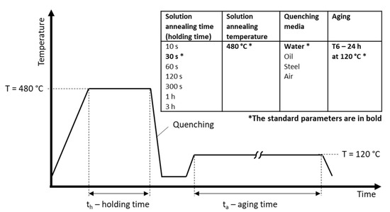 - Deutsches Institut für Normung—DIN. Wärmebehandlung von Aluminium-Knetlegierungen; DIN 29850; Beuth Verlag GmbH: Berlin, Germany, 1989. [Google Scholar]