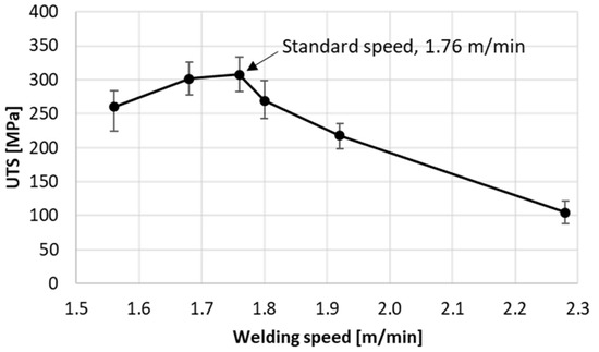 Influence of welding speed on the UTS of the welding seam.