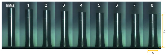 where is the yield stress defined at the reference strain rate of which is set to at room temperature. and in Equation (5) are design variables in the optimization problem. The object function J is defined as a square root of summation of the square of deviations in diameters and lengths of a deformed specimen between experiments and simulation results at each iteration step as below: