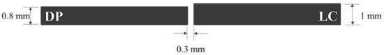 DPC340Y590T Dual Phase (DP) and JSC270C Low Carbon (LC) sheets with a respective thickness (t) of 0.8 and 1 mm were used for the experimentation. The chemical composition is shown in Table 1. The sheets were received under a commercial condition, which provided a Vickers hardness number of 187 ± 8 HV0.1 and 95 ± 4 HV0.1 for DP and LC steel, respectively. Sheets of 200 mm × 100 mm × t mm were prepared according to the joint geometry shown in Figure 1.