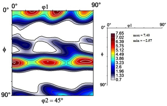 ODF at constant ϕ2 = 45° of as-received specimen.