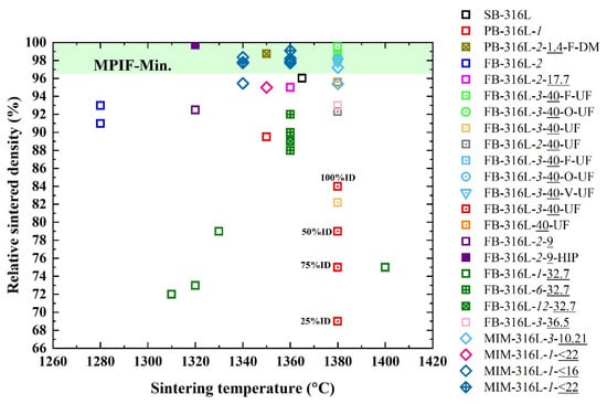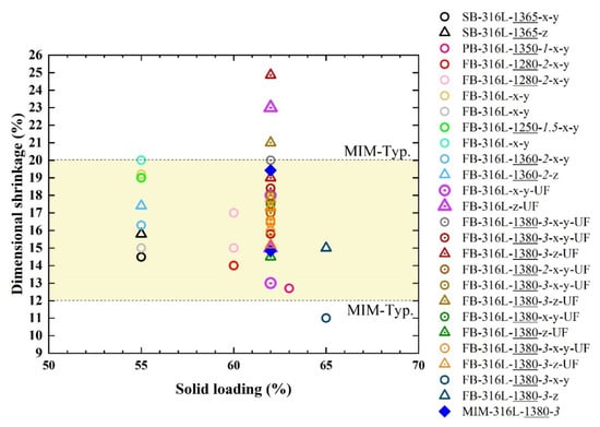 - Huang, M.-S.; Hsu, H.-C. Effect of backbone polymer on properties of 316L stainless steel MIM compact. J. Mater. Processing Technol. 2009, 209, 5527–5535. [Google Scholar] [CrossRef]