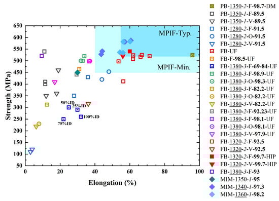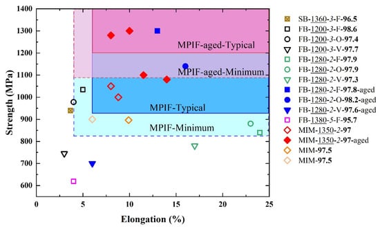 - MPIF. Material Standards for Metal Injection Molded Parts; Metal Powder Industries Federation: Princeton, NJ, USA, 2016. [Google Scholar]