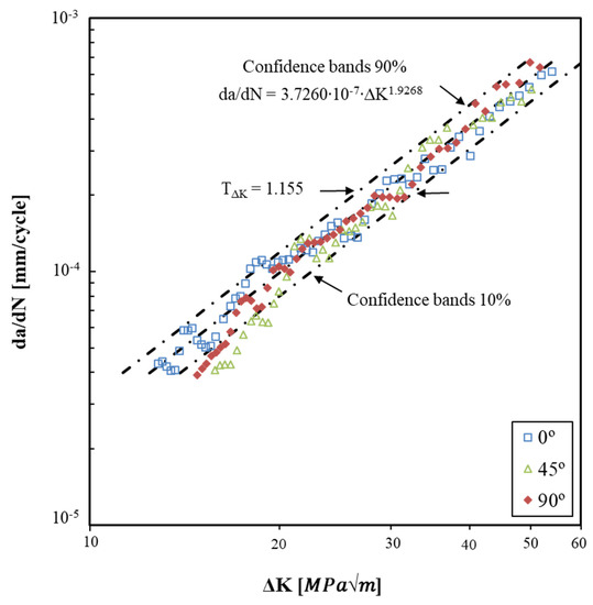 - Madia, M.; Vojtek, T.; Duarte, L.; Zerbst, U.; Pokorný, P.; Jambor, M.; Hutař, P. Determination of fatigue crack propagation thresholds for steel in presence of environmental effects. Int. J. Fatigue 2021, 153, 106449. [Google Scholar] [CrossRef]