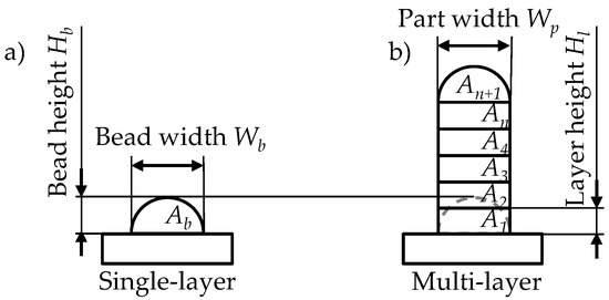 - The height increment required for a layer-wise additive process can be chosen based on the presented formula that uses the dimensions of the wire, the speed ratio, and the width of single beads.
