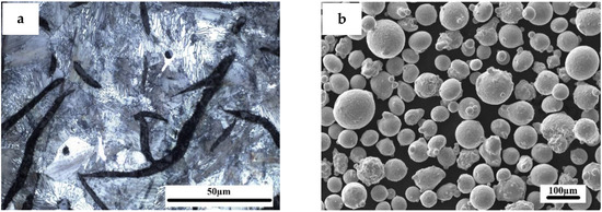 (a) Microstructure of the pearlitic cast-iron disc; (b) microstructure of the F55 granular powder.