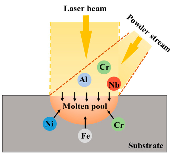 - Li, Y.; Su, K.; Bai, P.; Wu, L. Microstructure and property characterization of Ti/TiBCN reinforced Ti based composite coatings fabricated by laser cladding with different scanning speed. Mater. Charact. 2020, 159, 110023. [Google Scholar] [CrossRef]