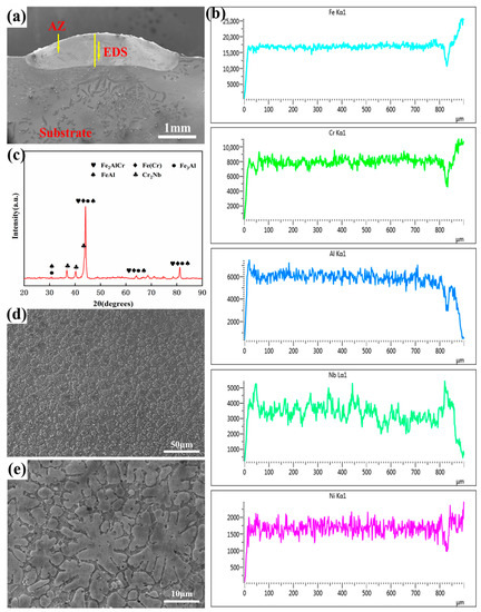 - Li, Y.; Nie, J.; Liang, Z.; Bai, P.; Yang, Y.; Chen, B.; Liu, S.; Guan, Q.; Cai, J. Microstructure evolution and high-temperature oxidation behavior of FeCrAlNbNi alloyed zone prepared by laser surface alloying on 304 stainless steel. J. Alloys Compd. 2021, 888, 161468. [Google Scholar] [CrossRef]