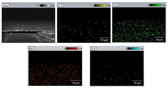 In addition, quantitative EDX map examinations were performed to investigate the elemental distribution of the anodic layers. The data showed the presence of sulfur and carbon. In Figure 3, a typical composition of the AAO films is presented.