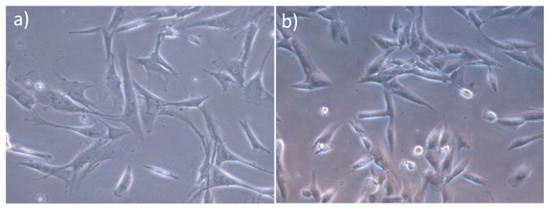 (a) hDPSCs and (b) MG-63 cells. 40×.