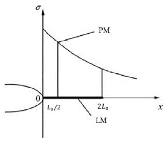 Theory of critical distances (TCD) takes the overall stress distribution near the notch as the key factor affecting the failure of materials or structures. It is considered that when the average stress in a specific area near the notch exceeds the fatigue strength, fatigue failure of materials or structures will occur. TCD can be summarized as point method, line method, surface method, and volume method. Among them, the point method and line methods [36] are the most widely used. The principle is as follows: