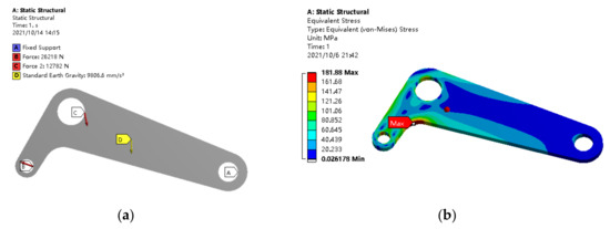 - Ge, X. Fatigue Life Analysis of Lifting Mechanism Based on Finite Element and Multi-Body Dynamics. Master’s Thesis, Qingdao University, Shandong, China, 2014. [Google Scholar]