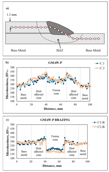 Chicago/Turabian StyleRomero-Orozco, Alan Jadir, José Jaime Taha-Tijerina, Rene De Luna-Alanís, Victor Hugo López-Morelos, María del Carmen Ramírez-López, Melchor Salazar-Martínez, and Francisco Fernando Curiel-López. 2022. "Evaluation of Microstructural and Mechanical Behavior of AHSS CP780 Steel Welded by GMAW-Pulsed and GMAW-Pulsed-Brazing Processes" Metals 12, no. 3: 530. https://doi.org/10.3390/met12030530