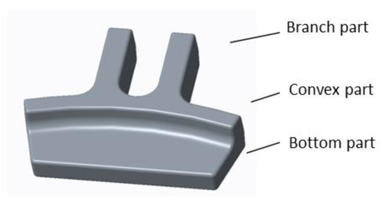Finite element simulation has been widely used as an optimization design technology in the application of forging processes [23]. Sheu et al. [24] investigated the feasibility of one-step and two-step forming processes for a coupled gear forging numerically and experimentally. They proposed a preform design method based on the geometrical features of the product. Meng et al. [25] proposed the response surface method combined with the finite element simulation and obtained optimum geometric parameters of pre-forging for the coupler knuckle of a railway wagon. Lee et al. [26] used the electric field theory for hot forging preforming design. The preform shape for axisymmetric forging was found based on the equipotential lines arranged between the initial shape and the final shape. However, this method may be only applicable to forging problems with axisymmetric or 2D planar features. Many optimization variables should be designed in forging forming processes, such as initial blank shape, forging temperature, pre-formed blank shape, forming speed, and die size. In the present work, a rapid design method of pre-form blank was proposed based on the shape characteristics of parts and numerical simulation analysis. It will help in finding a new route for the forming optimization.
