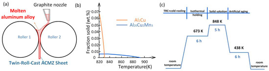 - Birol, Y. Analysis of macro segregation in twin-roll cast aluminium strips via solidification curves. J. Alloys Compd. 2009, 486, 168–172. [Google Scholar] [CrossRef]