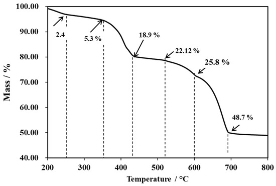 Thermogravimetric analysis curve of ammonium-sodium jarosite with arsenic.