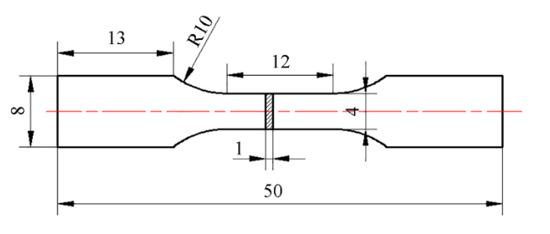 The microstructures of the composites were characterized by scanning electron microscope (SEM, Phenom Pure+, Netherlands). The samples to be observed for SEM were electrolytic corroded with 70% H3PO4 and 30% C2H5OH corrosive solution after polishing. In order to quantify the size of reinforcements, the equivalent diameter of the reinforcements is obtained through image processing, which is based on the reinforcements contour; the contour area is equivalent to the circular area and achieves an equivalent diameter [6]. Furthermore, at least 10 different SEM images of each composite were used for reinforcement size statistics, totalling more than 1000 particles. The phases and microstructures were characterized using the transmission electron microscope (TEM, FEI TECNAI G2 F20, FEI Company, Hillsboro, OR, USA). Preliminary thinning of the samples was carried out by mechanical grinding and electrochemical double spray methods and an ion thinner (Gatan691, Gatan Inc., Pleasanton, CA, USA) was used for final thinning. The electrical conductivity of deformed composites was measured by an eddy-current instrument (Sigma 2008B, Shanghai, China) with temperature calibration and expressed in International Annealed Copper Standard (% IACS); at least 20 measurements were taken on a 20 mm × 200 mm sample and averaged. The strength of the composites was tested on the tensile testing machine (AG-IC 100KN, Shimadzu, Kyoto, Japan) at a tensile rate of 0.5 mm/min. Three tensile tests were carried out for each composite and averaged. The dimensions of the tensile specimens with a fillet radius of 10 mm are shown in Figure 1. In addition, in order to analyse the mixing effect of molten Cu-B and Cu-Ti master alloys at different temperatures, the viscosity changes of Cu-1.2 wt.% B and Cu-2.8 wt.% Ti melts at 1200 °C–1450 °C were measured on the high temperature rotary vibration type viscosity measuring instrument (OSVM, SAP, Tokyo, Japan).