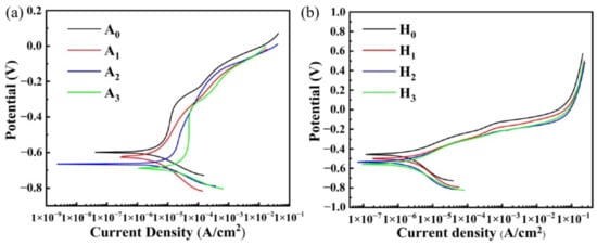 Polarization curves of the HCCIs: (a) as-cast, (b) after heat treatment.