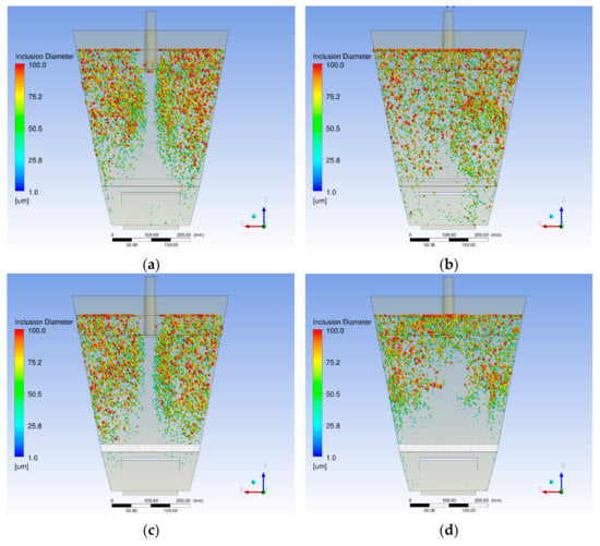 - Applying Lorenz force to control the flow and inclusions behavior. It has been reported that an electromagnetic braking field can be employed to adjust the melt flow, temperature distribution, inclusion floating, and solidification, improving the product quality by enhancing the stability and continuity in the continuous casting process [14,15,16,17].