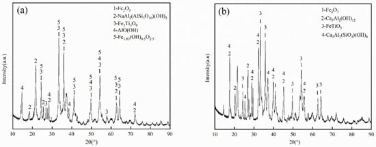 X-ray diffraction pattern of (a) high-iron red mud and (b) the calcified slag of high-iron red mud.