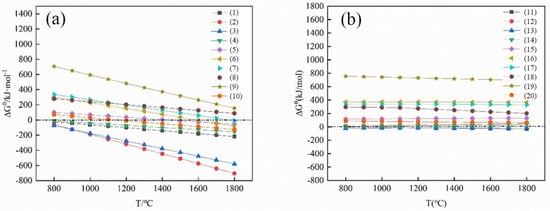 Calculation of the Gibbs free energy ΔGθ of (a) carbon reduction and (b) carbon monoxide reduction of calcified slag.