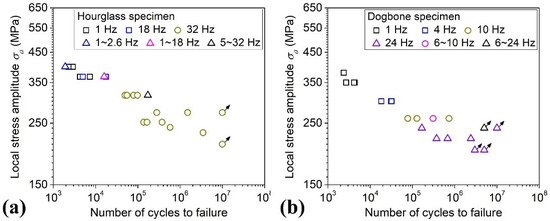 - Li, Y.Q.; Song, Q.Y.; Feng, S.C.; Sun, C.Q. Effects of loading frequency and specimen geometry on high cycle and very high cycle fatigue life of a high strength titanium alloy. Materials 2018, 11, 1628. [Google Scholar] [CrossRef] [PubMed] [Green Version]