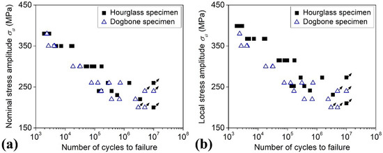 - Sun, C.Q.; Song, Q.Y. A method for evaluating the effects of specimen geometry and loading condition on fatigue life of metallic materials. Mater. Res. Express 2019, 6, 046536. [Google Scholar] [CrossRef] [Green Version]