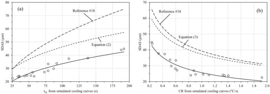 b) CR, both parameters determined from the simulated cooling curves. Interrupted lines correspond to data from [