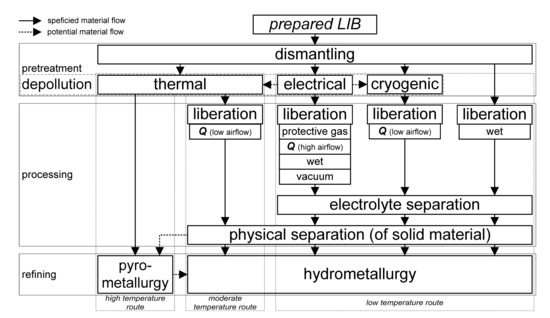 - Werner, D.; Peuker, U.A.; Mütze, T. Recycling Chain for Spent Lithium-Ion Batteries. Met. Open Access Metall. J. 2020, 10, 316. [Google Scholar] [CrossRef] [Green Version]