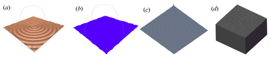 The 3D solid model is the basis of finite element simulation. Based on the method described in Section 2, the point cloud data of the surface topography can be obtained. The modeling method of the 3D solid model based on the point cloud data will be introduced in this section. The modeling method based on point cloud data is also called inverse modeling, which is widely used in the field of construction machinery [32,33]. In this paper, this method is introduced into a 3D solid model.