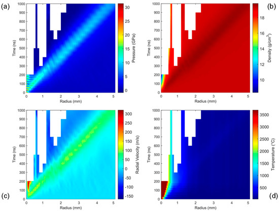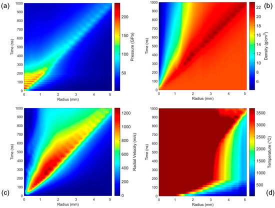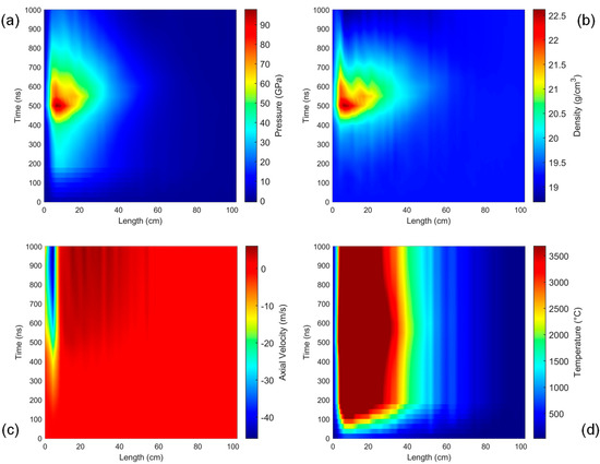 - Tahir, N.; Schmidt, R.; Brügger, M.; Assmann, R.; Shutov, A.; Lomonosov, I.; Fortov, V.; Piriz, A.R.; Deutsch, C.; Hoffmann, D. Interaction of Super Proton Synchrotron beam with solid copper target: Simulations of future experiments at HiRadMat facility at CERN. Nucl. Instruments Methods Phys. Res. Sect. A: Accel. Spectrometers, Detect. Assoc. Equip. 2009, 606, 186–192. [Google Scholar] [CrossRef]