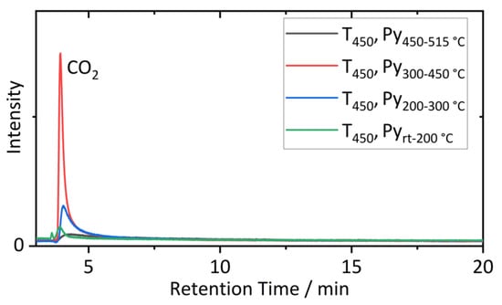 Again, no electrolyte residues were found after the thermal treatment. As expected, on the basis of the thermal stability, the Py-GC-MS investigations showed that the SBR binder was still present in the sample that was roasted at 200 °C. However, as is shown in Figure 10, no SBR residues, or any other characteristic peaks, were found after pretreatment at 450 °C [34].