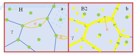 Mechanisms of microstructure change induced by concentration and diffusivity of reversible H (a) 0Cu and (b) 3Cu, adapted from [45].