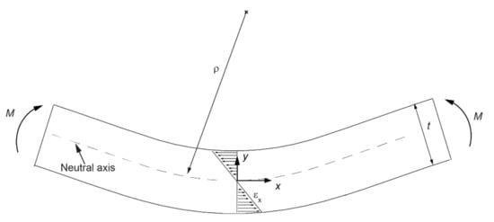where and [1/m] are the longitudinal strain and the curvature, respectively. In the elastic regime, the longitudinal stress [] is related to the longitudinal strain by