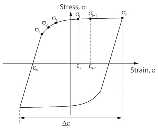 where is the current size of the yield surface. The stresses and are marked in Figure 4. To solve the back stress hardening law of Equation (12) over this stabilized cycle, with the first data point of and , the expression of [] is