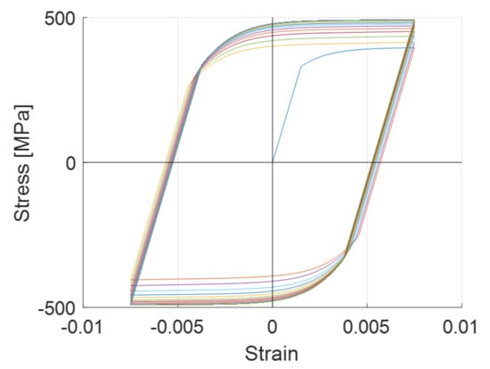 Stress–strain curves of a uniaxial, symmetric strain-controlled, cyclic test.