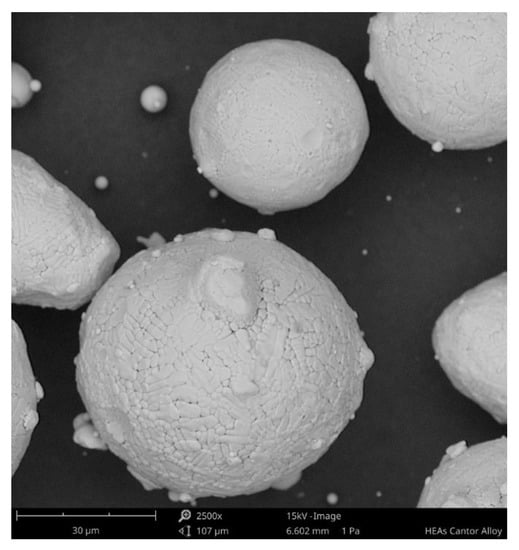 In the figure, the dendritic structure of the employed particles can be highlighted. The hardness of these particles was 1.5 GPa [9]. The average grain size of the as-received particles was 1.37 μm [45].