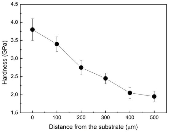 The nanoindentation hardness as a function of the distance from the substrate is shown in Figure 8.