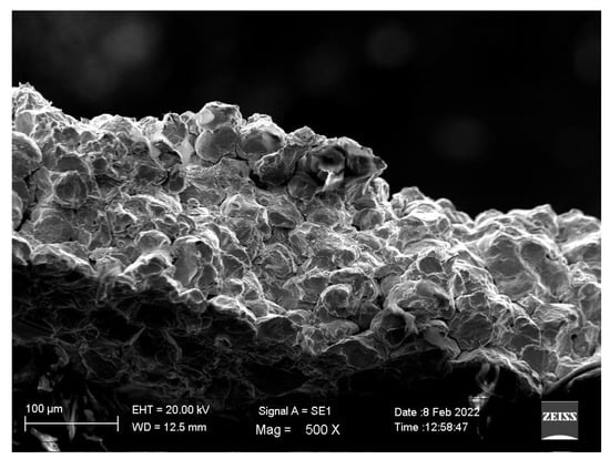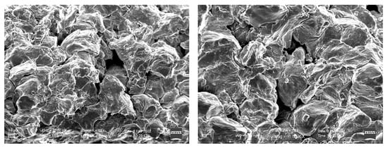 By observing the zones of the fracture surface where voids were individuated, it should be highlighted that these voids tended to form where particles appeared with their original aspect (Figure 17).